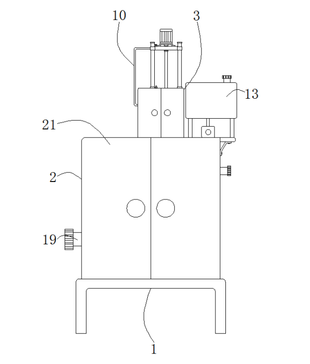 6.根據權利要求1所述的脫硫劑加料裝置,其特征在于:所述箱體(2)的一側連通有出氣管(20),所述箱體(2)與所述防護箱(3)的正面均開設有箱門(21)。